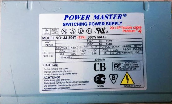 Блок питания Power Master JJ-300T 300W