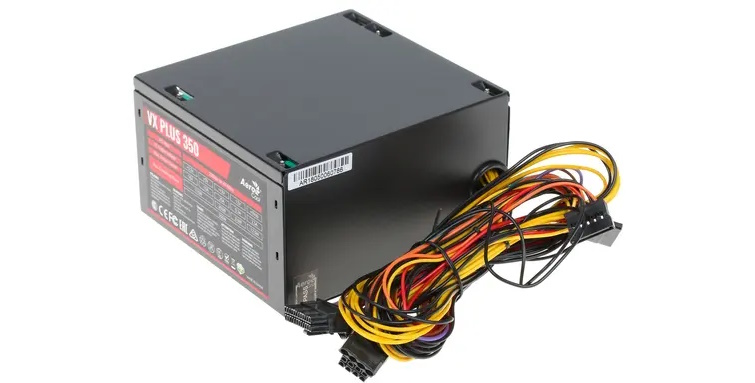 Блок питания Aerocool VX 350W PLUS [VX-350 PLUS], представленный в черном цвете, станет неотъемлемой частью системного блока, от которого будут получать питание все его комплектующие элементы. Модель выполнена в форм-факторе ATX, ее размеры соответствуют 140x150x86 мм. Устройство стало обладателем активного корректора коэффициента мощности, благодаря которому оно практически полностью избавилось от паразитной реактивной мощности. Имеется поддержка EPS12V. Версия ATX12V - 2.3.