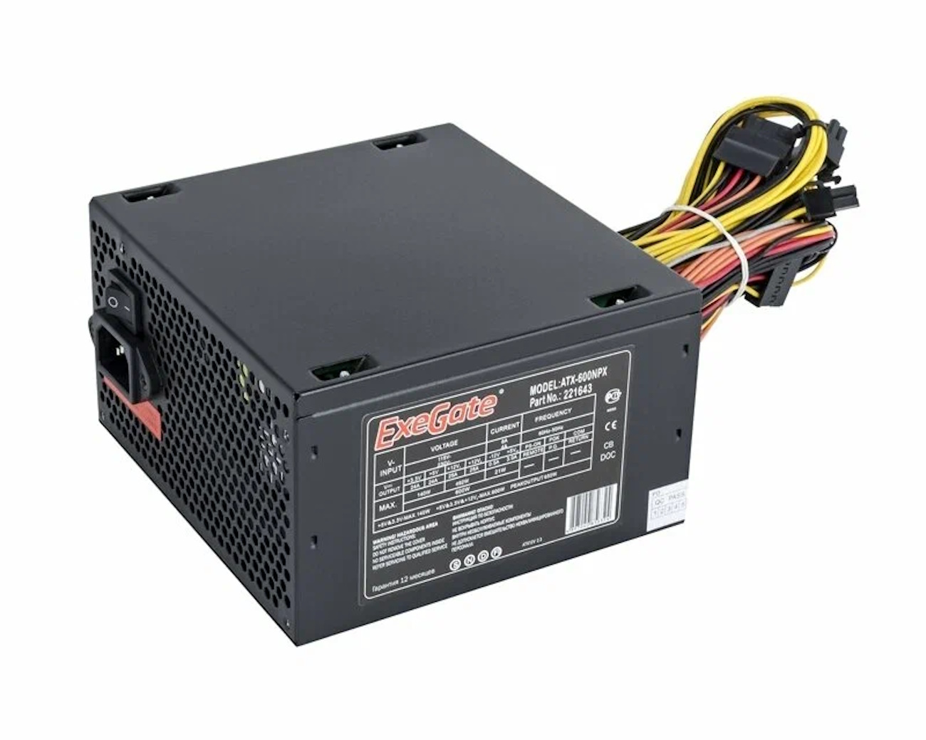 Блок питания ExeGate 600NPX представляет собой надежное решение для сборки компьютера средней мощности, обеспечивающее стабильное электропитание всех компонентов системы при разумном уровне шума.