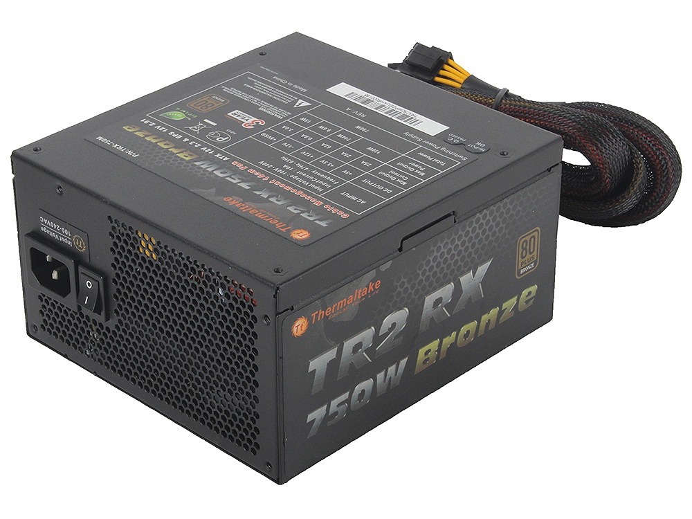 Компьютерный блок питания Thermaltake TR2 RX 750W [TRX-750M] от известного производителя компьютерного оборудования из Тайваня Thermaltake Ltd обладает мощностью 750 Вт, что является достаточным для питания любого компьютерного процессора. Модель изготовлена в черно-сером цвете и имеет зарегистрированный сертификат эффективности больше 80 процентов. Прибор оснащен встроенной защитой от перегрева и перегрузки, что служит гарантией безопасности при работе.
