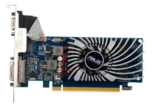 Asus GeForce GT 610 [GT610-1GD3-L] – топовое решение для мини-компьютеров, главной особенностью которого стала эффективная система охлаждения с пыленепроницаемым осевым кулером и алюминиевым радиатором. За производительность отвечает видеочип GF119 с тактовой частотой 810 МГц, за быстродействие в играх – один гигабайт GDDR3-памяти, работающей на частоте 1200 МГц со скоростью 9.6 Гбайт/сек.